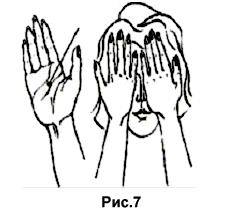 Согревание глаз ладонями. Закройте глаза. Положите слегка согнутые ладони на глазницы, не касаясь глазных яблок. В течение 30-60 с. направляйте тепло из ладоней в глаза (рис. 7).
