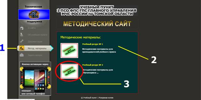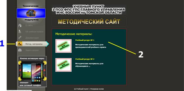 1. Активируйте в главном меню вкладку «Метод. материалы» [1]. Соответствующий